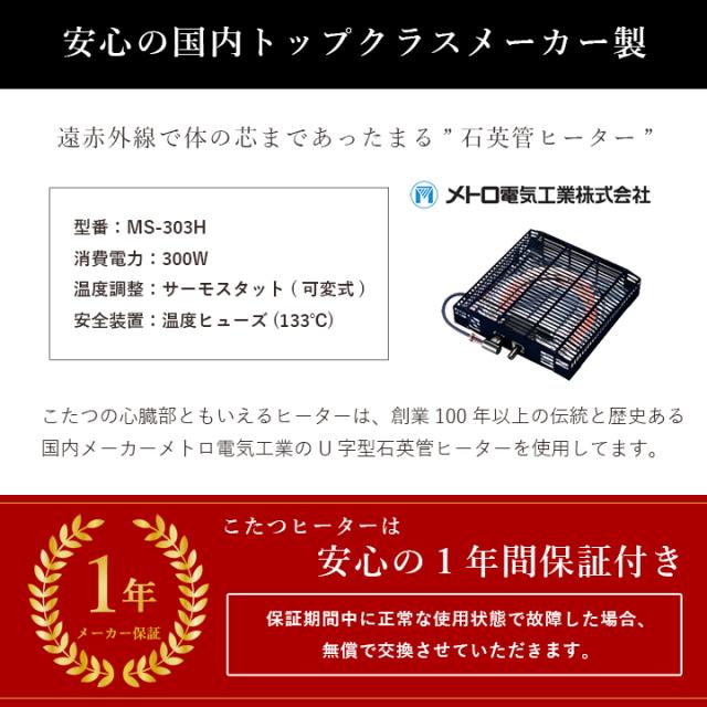 | こたつ掛布団:中国製 こたつ台:中国製(ヒーター:マレーシア) |