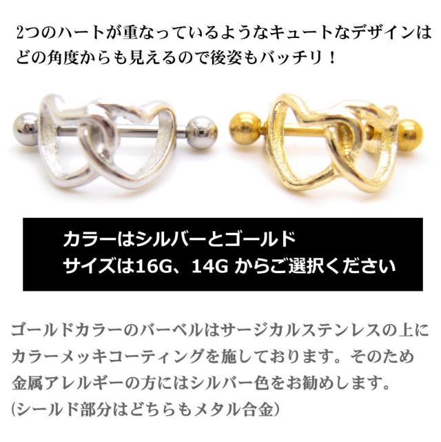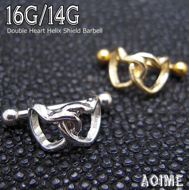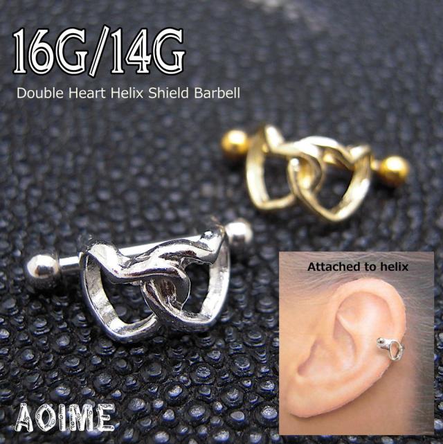 ダブルハート ヘリックス シールドバーベル 14G 16G ボディピアス バーベル ステンレス 軟骨ピアス bp1500