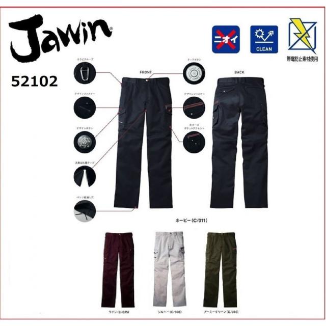 (秋冬) 男女兼用 自重堂 52102 ノータックカーゴパンツ L64〜L67 70cm〜112cm ジャウィン Jawin 帯電防止素材 作業服 (すそ直しできます)