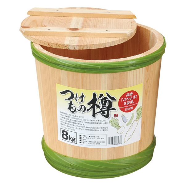 高級さわら材を使用したこの樽で漬物を漬けることで、漬物から出る水分を効率的に吸収し、香りがよく風味の良いおいしい漬物を漬けることができます。