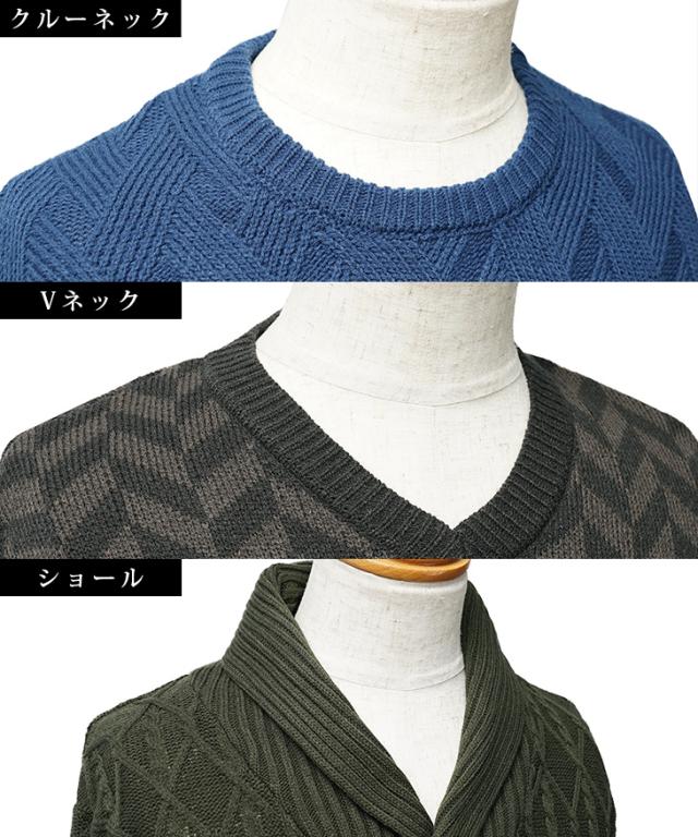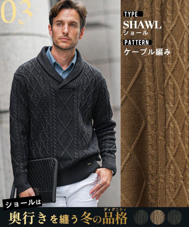 ネックラインがクルーネック・モックネック・ショールカラーの3タイプ展開となっており、着こなしに幅を持たせてくれる。