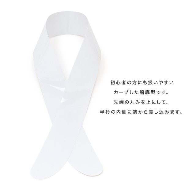 船底型にカーブしておりますので、長襦袢の襟に差し込みやすく、初心者の方にも扱いやすいタイプです。
