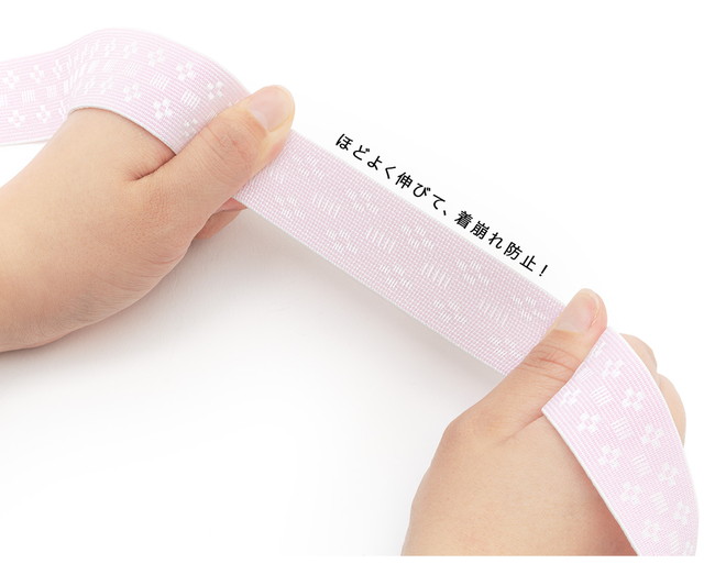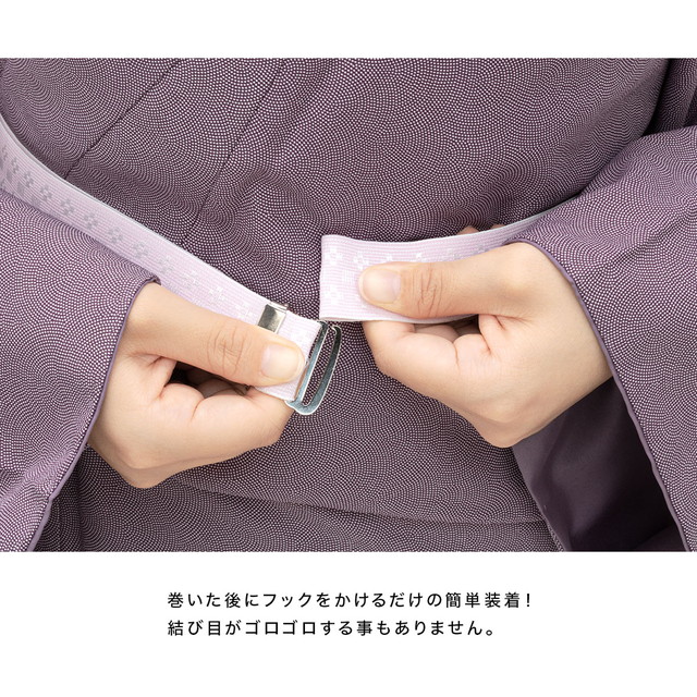ゴム腰紐は巻いた後に留め具を留めるだけで簡単に長襦袢や着物を着付けることができます。