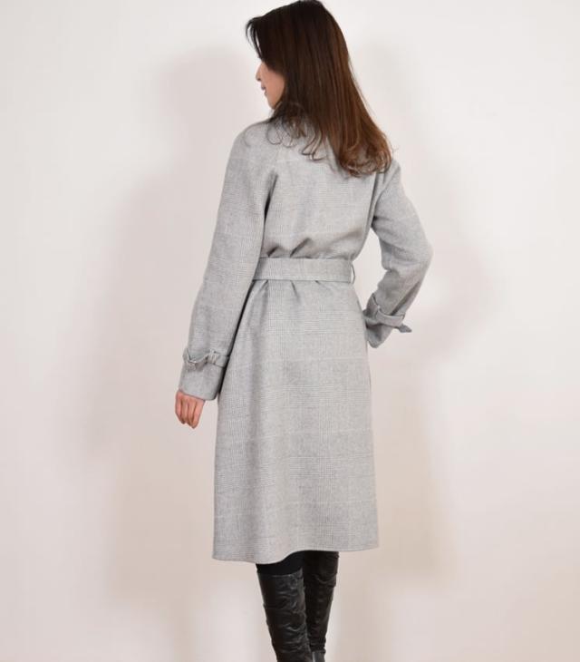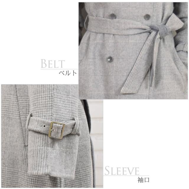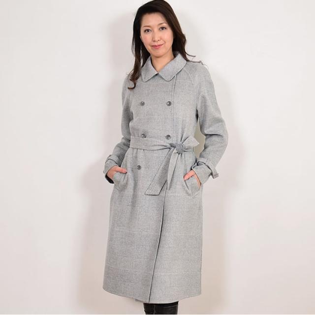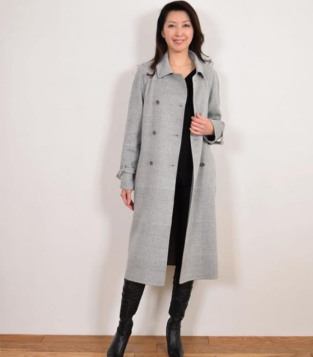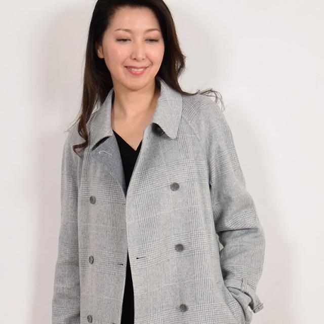 カシミヤ 混紡 ダブル フェイス グレンチェック トレンチ コート (CA3218)
