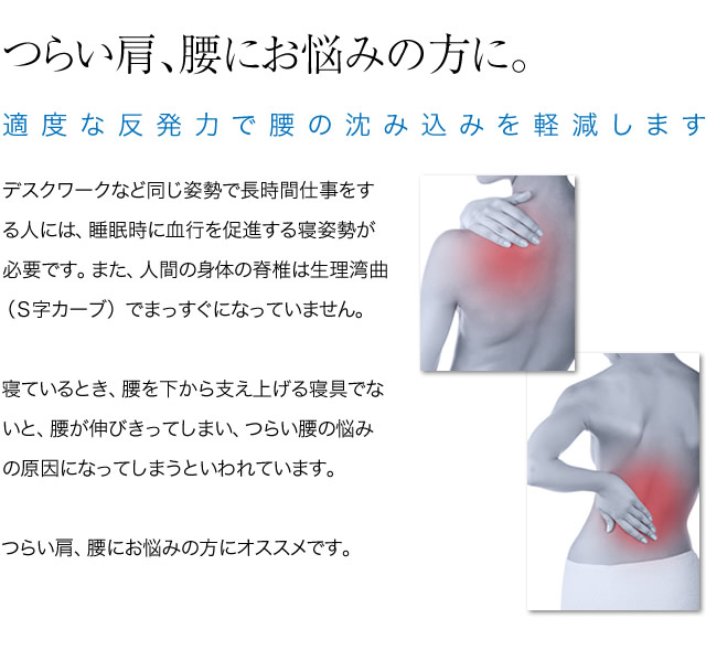 - 購入しました。 使い心地は めちゃくちゃ腰が 楽になり睡眠が浅かったのが解消去れました。 良いモノをありがとうございました。