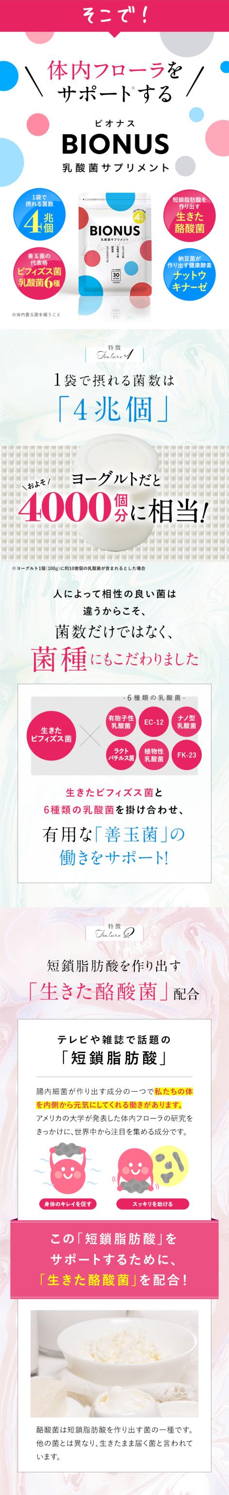 乳酸菌 サプリ ビオナス 単品 30日分 酪酸菌 ビフィズス菌 食物繊維 オリゴ糖 腸活 菌活 フローラ ナットウキナーゼ スッキリ 送料無料