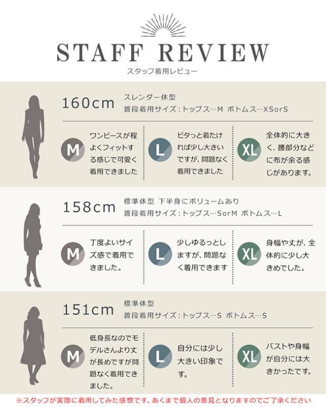 | サイズ | ■膝丈 【Mサイズ】 バスト:79-84 ウエスト:65-70 着丈:98 袖丈:63 【Lサイズ】 バスト:85-90 ウエスト:69-74 着丈:101 袖丈:63 【XLサイズ】 バスト:89-94 ウエスト:77-82 着丈:103 袖丈:65 ■ミニ丈 【Mサイズ】 バスト:83-88 ウエスト:69-74 着丈:85 袖丈:62 【Lサイズ】 バスト:87-92 ウエスト:73-78 着丈:88 袖丈:63 【XLサイズ】 バスト:91-96 ウエスト:79-84 着丈:92 袖丈:65 ※バスト・ウエストは平置き採寸したものを2倍して表示しています。 ※サイズはすべてCM(センチ)表記です。 ※サイズは平置き・メジャーで計測しておりますので、実際とは誤差が出る場合がございます。 |