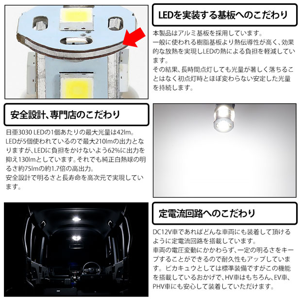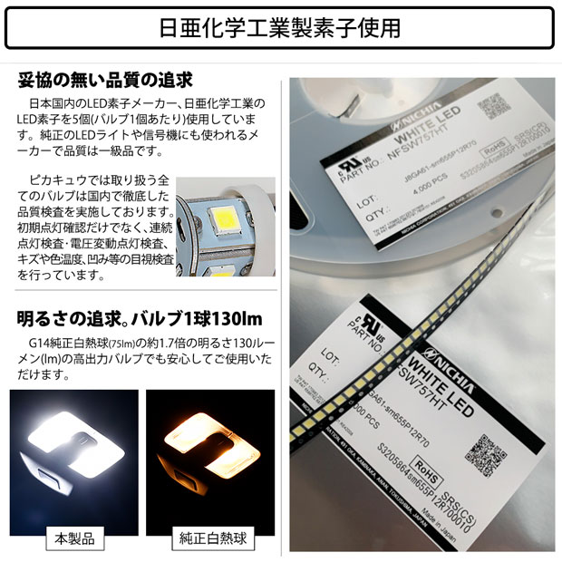 | ピカキュウ,LED専門店,LEDバルブ,LED,SMD,G14,BA9s,日亜化学工業,日亜,3030,ルームランプ,ポジション,ライセンス,爆光,130lm,130ルーメン,ROOM |