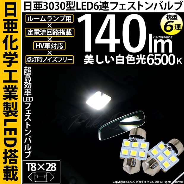 単 T8×28 日亜3030 6連 枕型 ルームランプ用 LEDフェストンバルブ 140lm LEDカラー:ホワイト 色温度:6500K 1セット2個 11-H-26