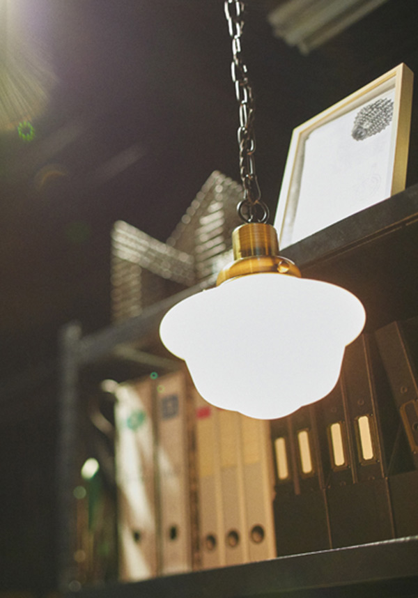 乳白色のガラスシェードがモダンで上品な空間を演出します。小ぶりなので、玄関の様な小さい空間やダイニングに最適です。また、複数並べて設置すると、カフェの様な雰囲気になります。