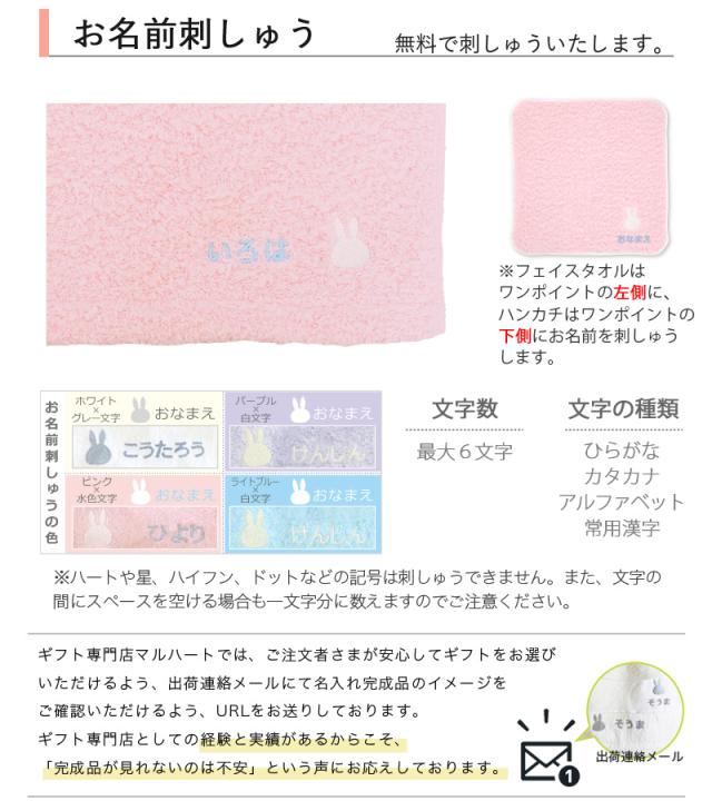 出産祝い ギフトセット 名入れ 今治タオル ミッフィーフェイスタオル&ハンカチ【入園祝い 入学祝い男の子 女の子 名前入り オーダーメイド タオルセット 刺繍 赤ちゃん プレゼント ハーフバースデー】