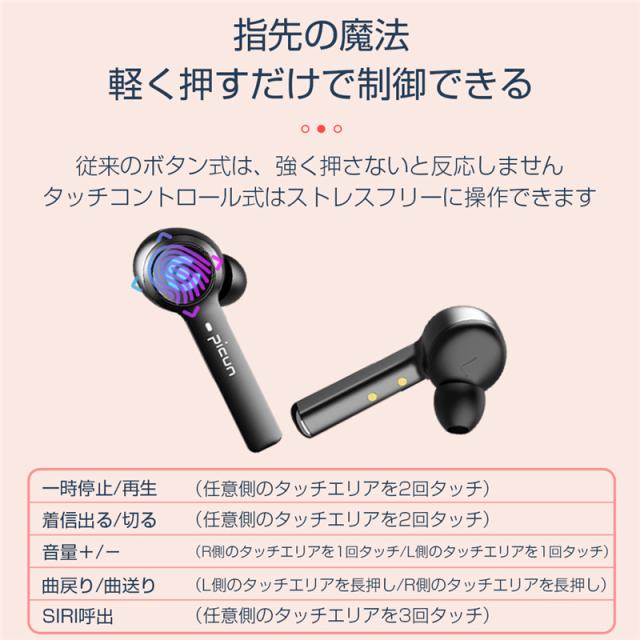 【指先の魔法】軽く押すだけで制御できるタッチコントロール式イヤホン。従来のボタン式は、強く押さないと反応しません!タッチコントロール式はストレスフリーに操作できます。