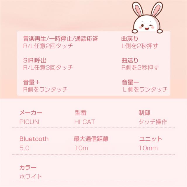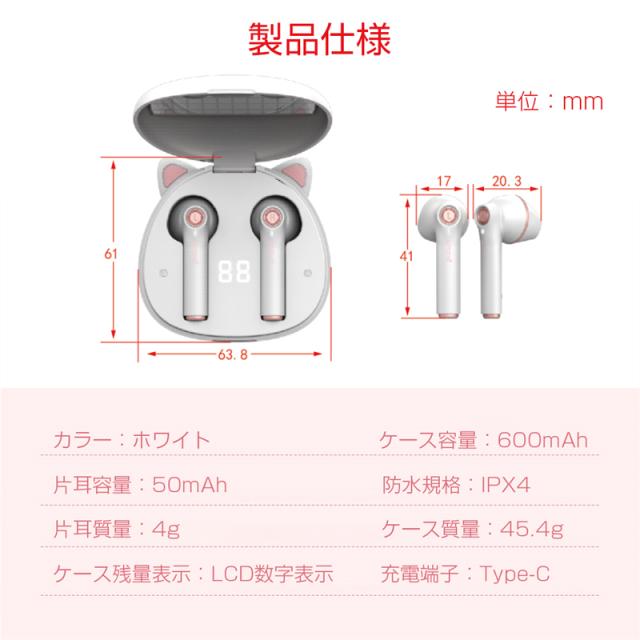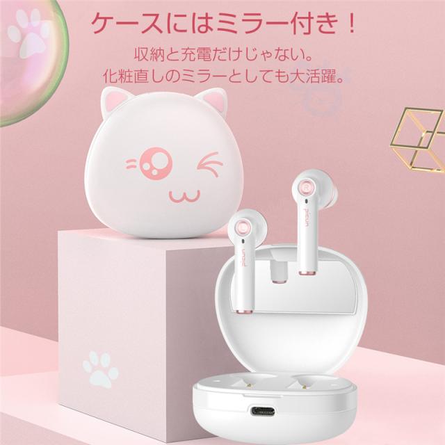 - 予備のワイヤレスイヤホンが欲しくて購入しました。 デザインが可愛く気に入ってます。 ネコちゃんケースを開けるとミラーが付いてて 便利だなぁと思いました あとは耐久性があれば嬉しいです