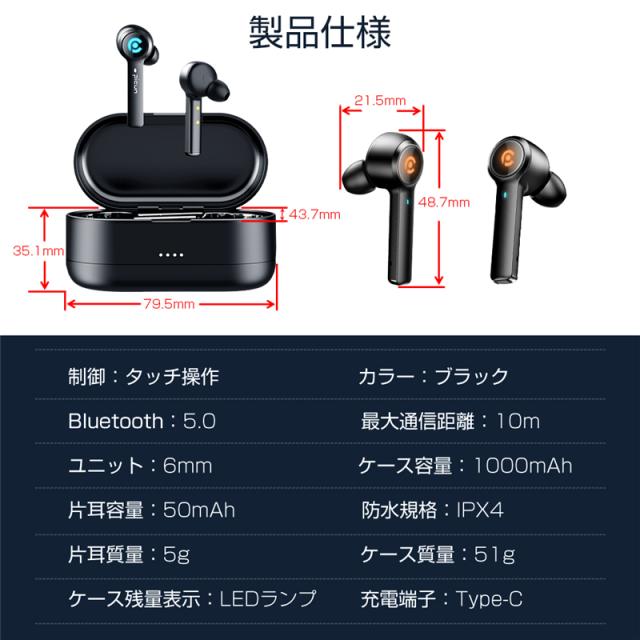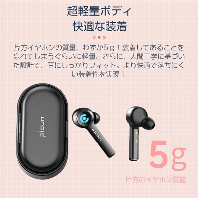 【超軽量ボディ快適な装着】片方イヤホンの質量、わずか5g!装着してあることを忘れてしまうぐらいに軽量。さらに、人間工学に基づいた設計で、耳にしっかりフィット。より快適で落ちにくい装着性を実現!