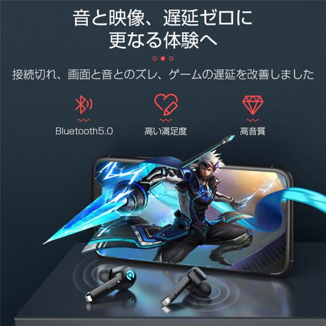 ワイヤレスイヤホン Bluetooth5.0 イヤホン 完全ワイヤレス ヘッドセット ブルートゥースイヤホン 低遅延 ゲームイヤホン 【PL保険加入済み製品・安心】