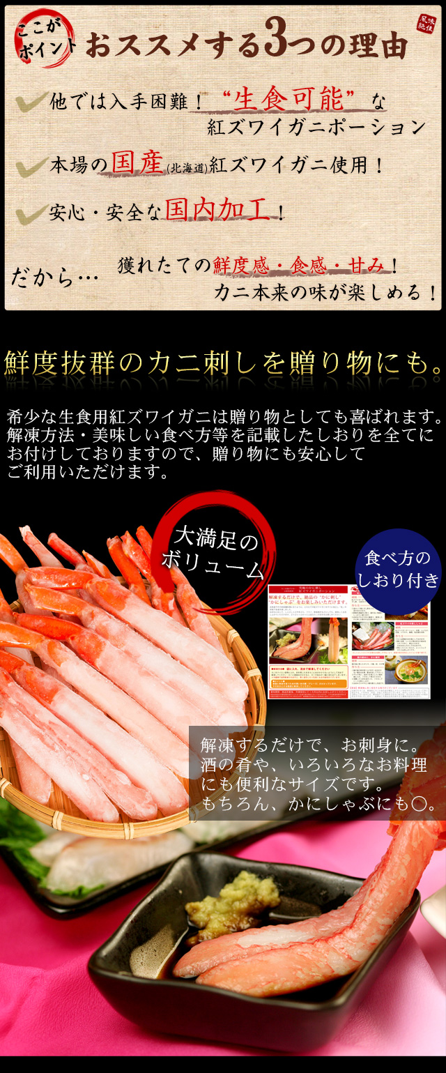 お歳暮 ギフト 紅ズワイガニお刺身・かにしゃぶポーション500g(16〜35本) かに カニ 蟹 送料無料(北海道・沖縄を除く)