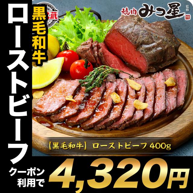★20%クーポンで⇒4,320円!★ しっとり柔らか♪ 黒毛和牛 ローストビーフ 400g(200g×2個) 専用ソース&西洋わさび付き 肉 牛肉 国産 ギフト プレゼント 贈り物 贈答 年末お届け可能 冬ギフト 年末年始
