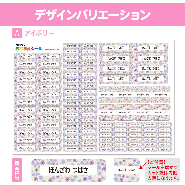 | 1シートにつき1つのお名前のみ作成可能です。お名前が2種類以上になる場合は、お名前の枚数分のご注文が必要となりますのでご注意ください |