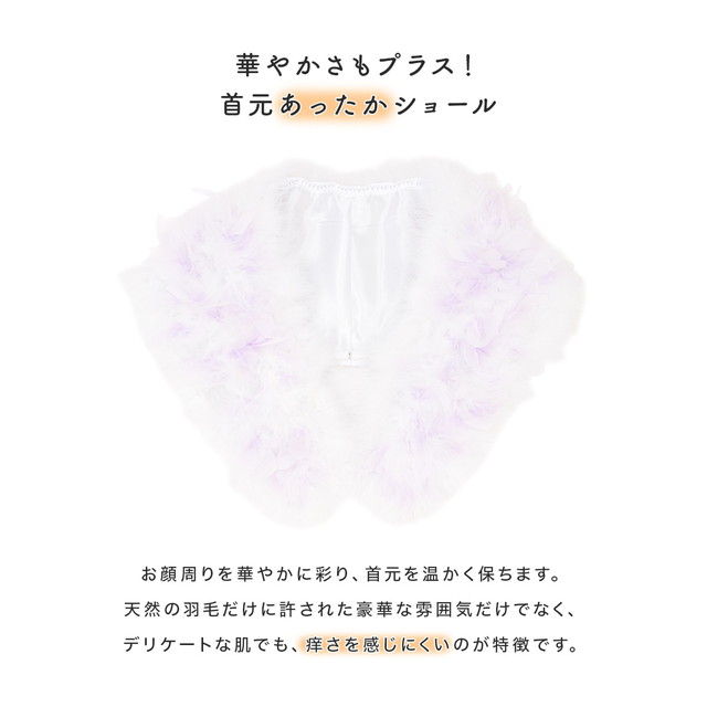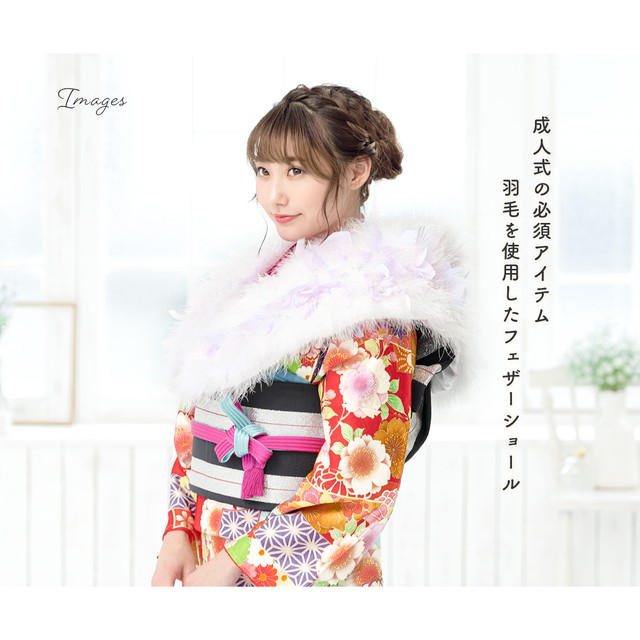 成人式の必須アイテム、本物の羽毛を使用したフェザーショールです。