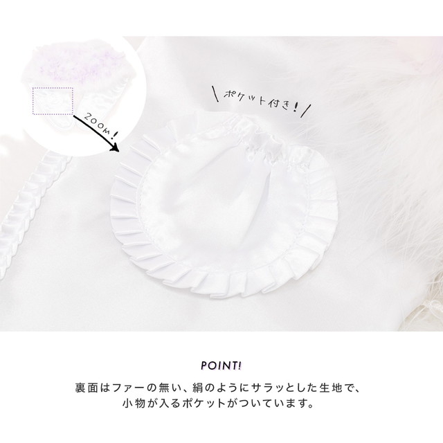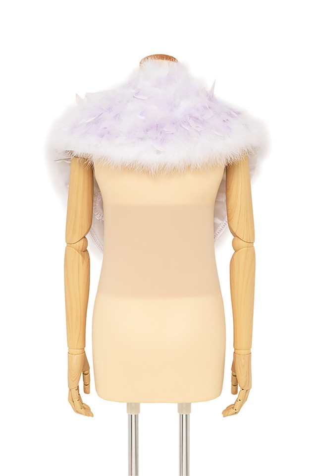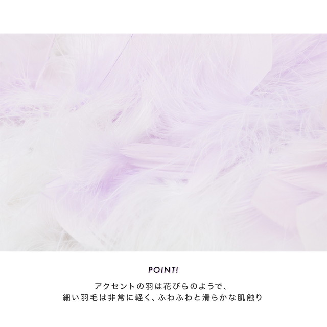 アクセントの羽は花びらのようで、細い羽毛は非常に軽く、ふわふわと滑らかな肌触りです。