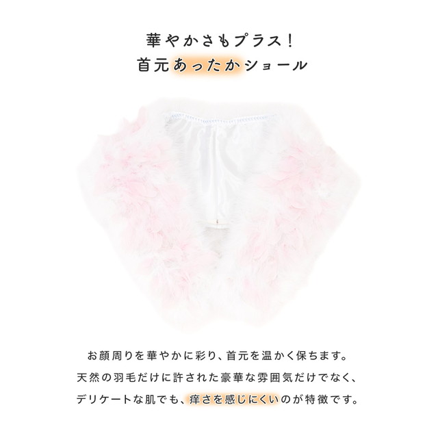 成人式の必須アイテム、本物の羽毛を使用したフェザーショールです。