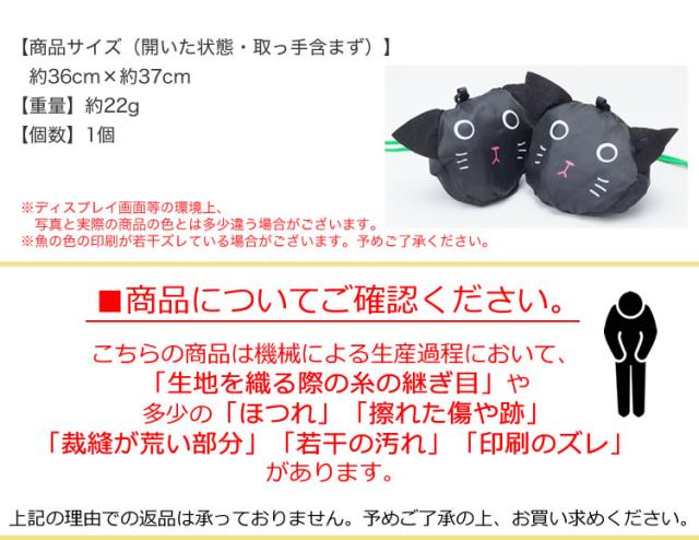 - 広げて見たらネコの顔がお尻に縫い付けてあり、胴体と前足が意味不明な絵になっててショックでした。エコバッグとしては使用出来るので評価は2です