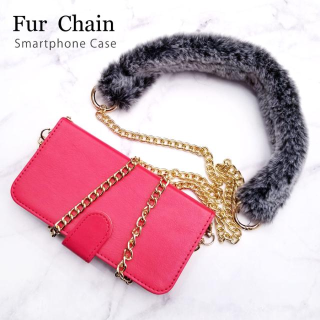 Galaxy Feel2 SC-02L ギャラクシーフィール2 スマホケース おしゃれ かわいい 手帳型ケース カバー ファー ロング チェーン ストラップ