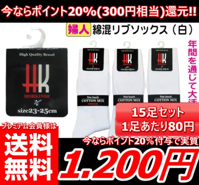 即発送【今なら必ずポイント20%(300円分)還元!!】【(15足セット)婦人 綿混 リブソックス(白)】 婦人 リブソックス ソックス 靴下 15足セット
