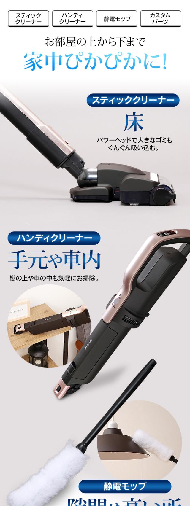 極細軽量スティッククリーナー モップ・マルチツール付 SBD-F2P モップ スティッククリーナー ハンディークリーナー 極細 軽量 掃除機 コードレス 充電式 紙パック モップ 掃除 そうじ アイリスオーヤマ 送料無料