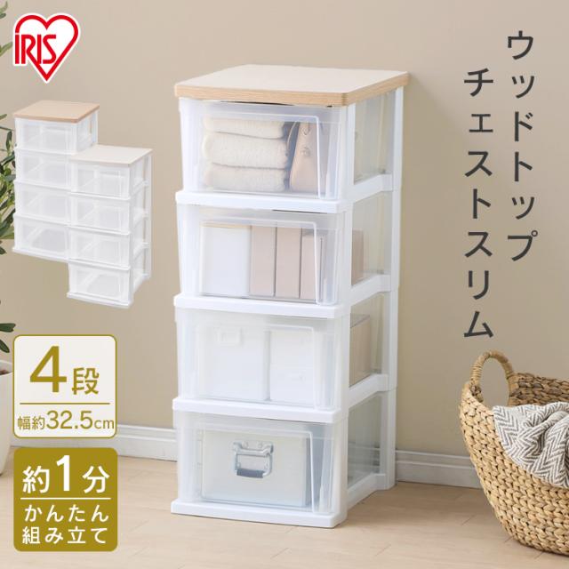 チェスト 4段 衣替え タンス スリム 収納ケース アイリスオーヤマ NSS-324WT 北欧 ウッドトップチェスト 収納ボックス 衣装ケース 衣類収納 収納 衣類 洋服 新生活 一人暮らし