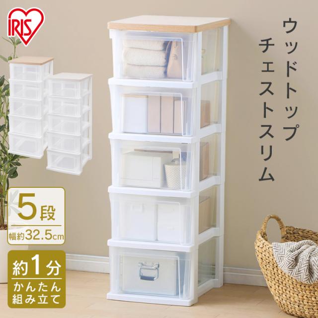チェスト 5段 衣替え タンス 収納ケース アイリスオーヤマ ウッドトップチェスト スリム NSS-325WT 北欧 収納ボックス 衣装ケース 衣類収納 収納 衣類 洋服 新生活 一人暮らし フレンチオーク/クリア ホワイト/クリア 全2色 おしゃれ 送料無料