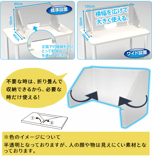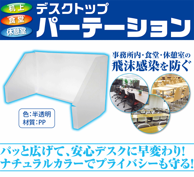事務所内の飛沫感染を防ぐ置き型パーテーション。