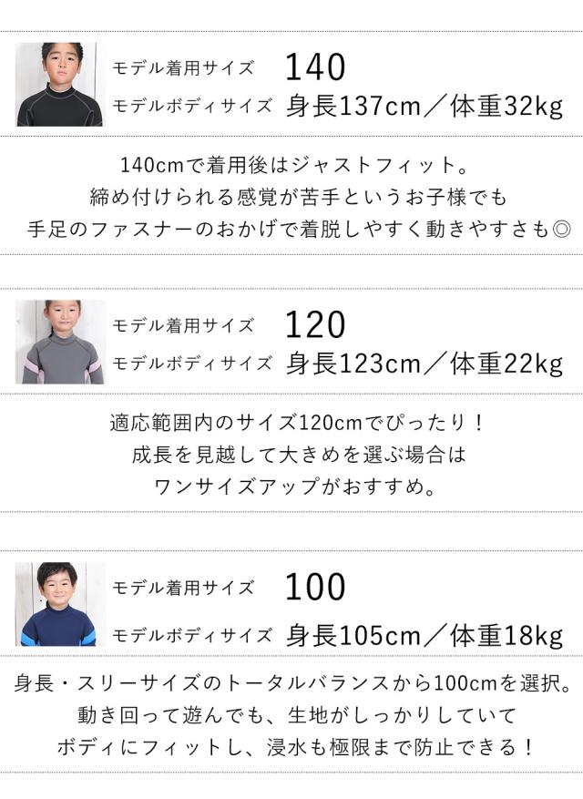 岩場での思わぬケガや、クラゲなどから体を守る。適度な浮力で体をサポートするので川遊びや海・プールなどでの安全面でも大活躍! ◆夏でも海や川の水温は意外と低い!体温低下予防に マリンスポーツや川遊びなどで水に濡れても体温が逃げないようにガード ◆レンタル品よりも体にフィット 最初の一着としてぜひお試しください。