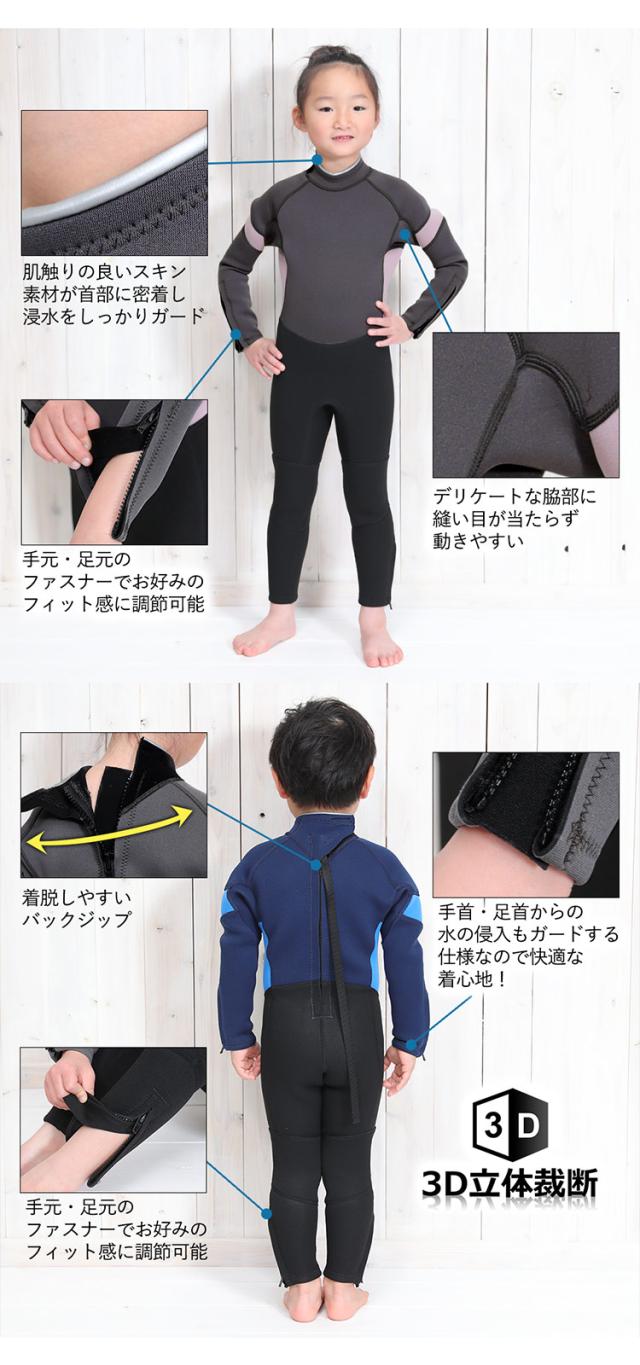 ウェットスーツ キッズ フルスーツ 3mm バックジップ 海 水遊び 子供 ジュニア ウエット サーフィン SUP 日本規格