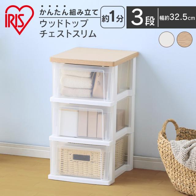 チェスト 3段 ウッドトップチェスト スリム NSS-323WT アイリスオーヤマ 収納 タンス 片付け フレンチオーク/クリア ホワイト/クリア 全2色 衣類収納 リビング 衣類ケース 収納ケース