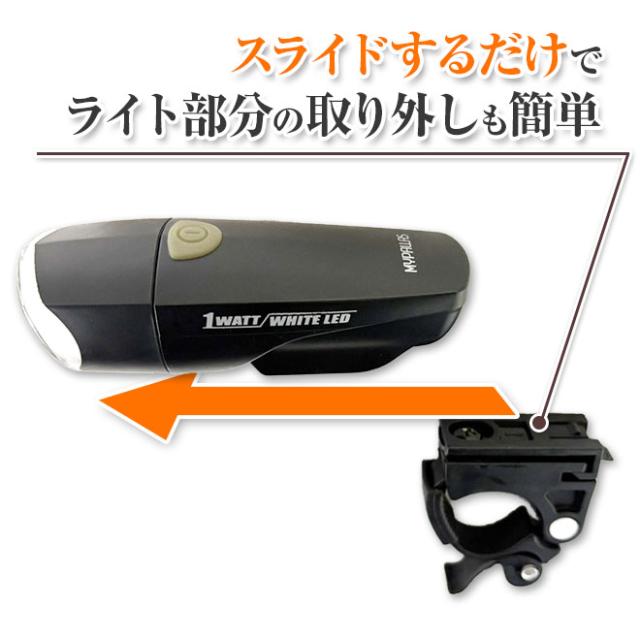 自転車 LEDライト フロント LED ライト 防滴 電池式 クロスバイス ロードバイク 点灯 点滅 P-LT04 My Pallas マイパラス ブラック 自転車用アクセサリー 取り付け簡単 送料無料