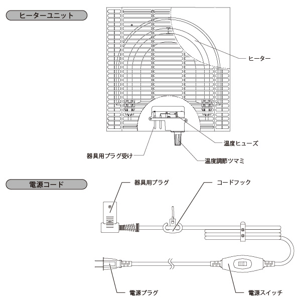 | 温度調節 | ヒーター本体温度調節つまみ |