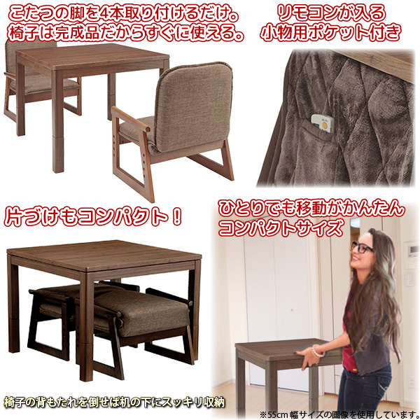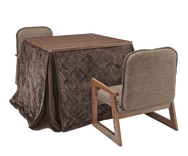 ユアサプライムス おふたり様用こたつ なごみ NGM-N75DLH(FBR) 75×75×57(38)cm 正方形 二人用 コタツテーブル チェアー 掛け布団 4点セット お二人様用 炬燵 デスク 在宅 テレワーク YUASA