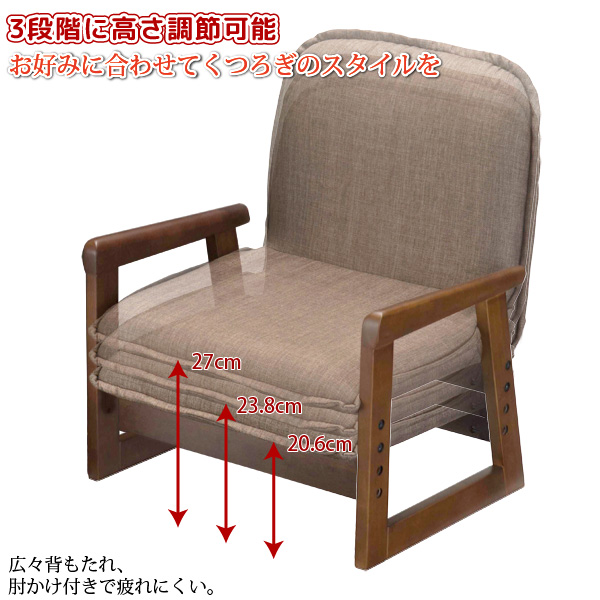 - 椅子の高さ3段階調節可。好みの座り方、楽な姿勢でご利用いただけます。