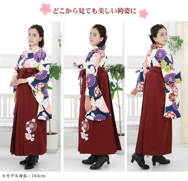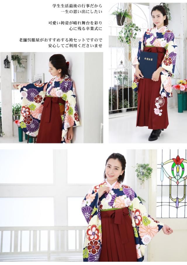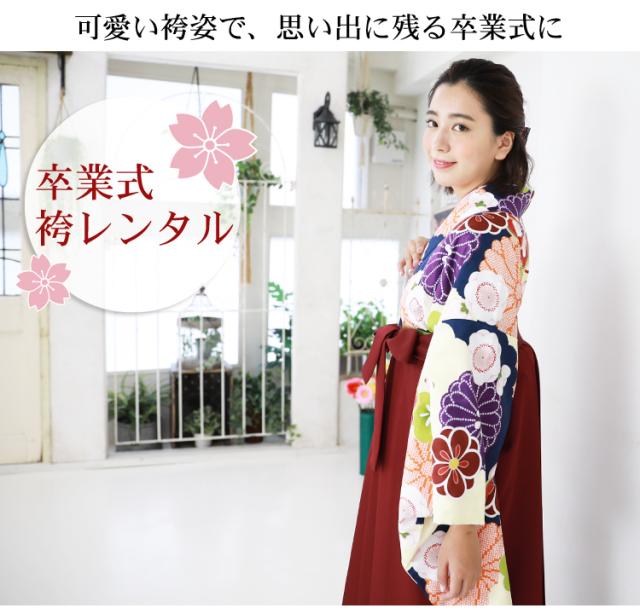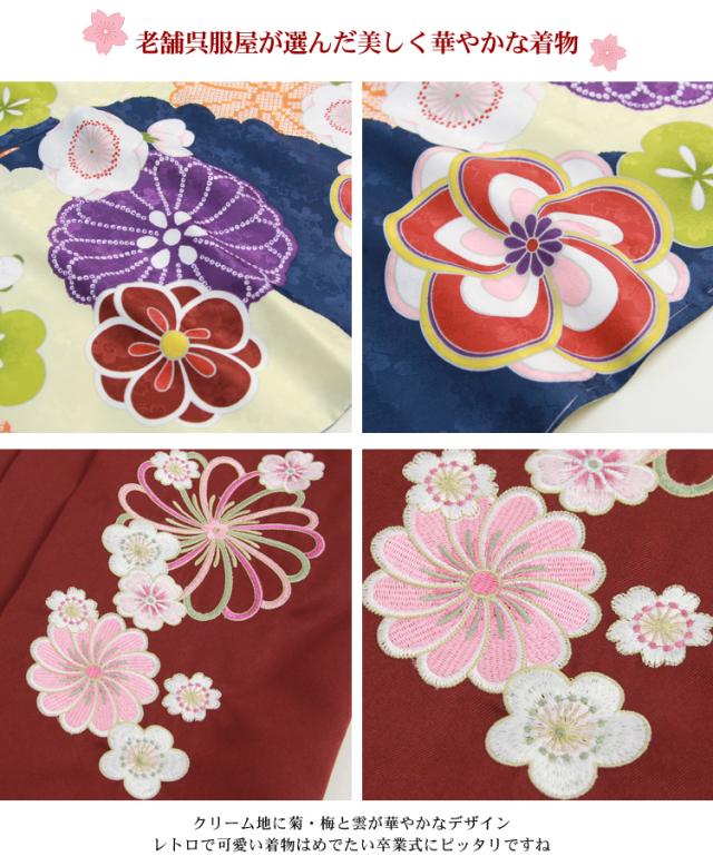 卒業式 袴 レンタル 女 袴セット 女性 卒業式袴セット 2尺袖着物&袴 フルセットレンタル 大学生 小学生サイズあり レトロモダン 「クリーム地に菊・梅と雲」 安い