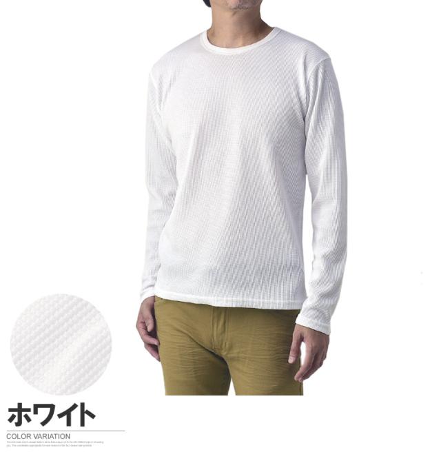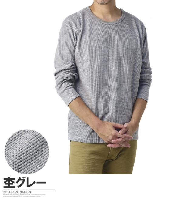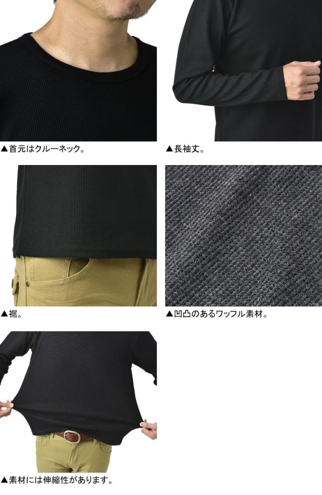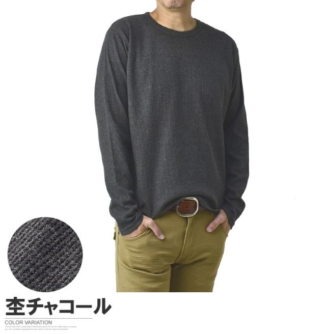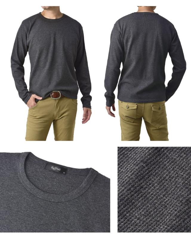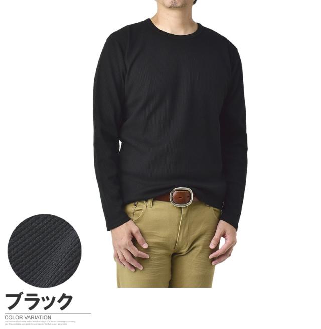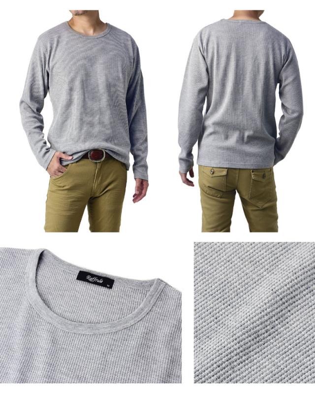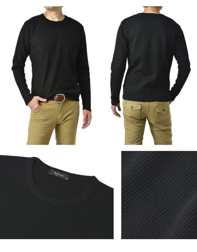 長袖Tシャツ メンズ 無地 ロンT ワッフル ベビーサーマル クルーネック カットソー トップス【E2D】【パケ2】