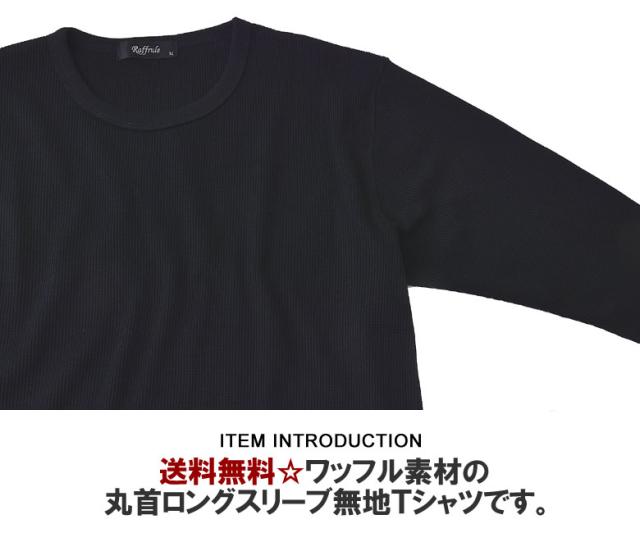 送料無料中☆ワッフル素材の丸首ロングスリーブ無地Tシャツです。