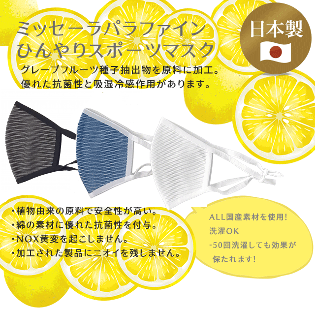 夏用機能性マスク[ミッセーラパラファイン ひんやりスポーツマスク]