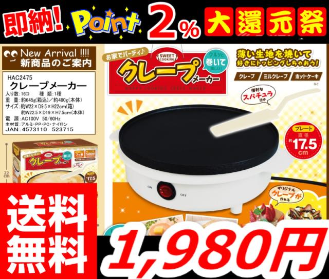 送料無料即納 更に今ならポイント2%還元中!!【【クレープメーカー】ホットプレート クレーププレート クレープ クレープ焼き機 手作りおやつ スイーツ