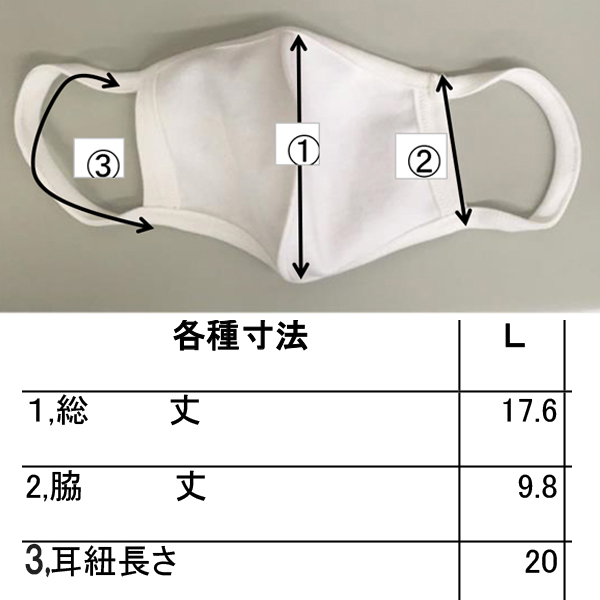 (マスク本体)総丈17.6cm/脇丈9.8cm/耳紐長さ20cm