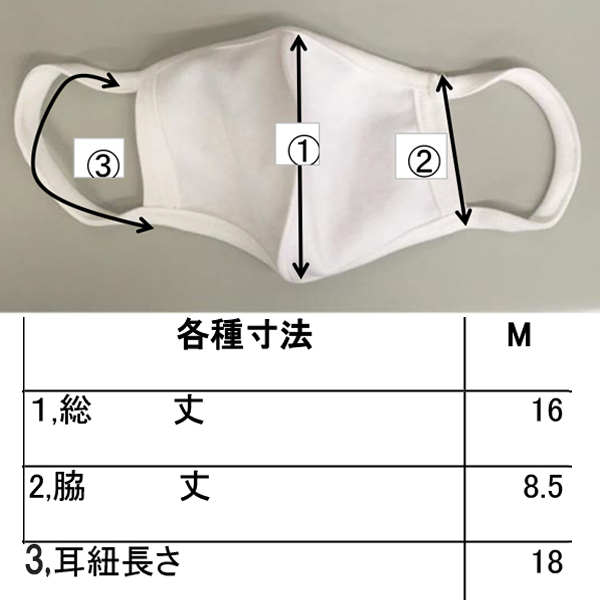 (マスク本体)総丈16cm/脇丈8.5cm/耳紐長さ18cm