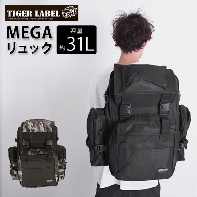 リュック 大容量 防災 通販 リュックサック 31l メンズ 修学旅行 キャンプ 旅行 部活 合宿 スポーツ 軽量 軽い 非常用持ち出し袋 シンプル 無地 カモフラ 迷彩 メガリュック バックパック TIGER LABEL タイガーレーベル TL-5