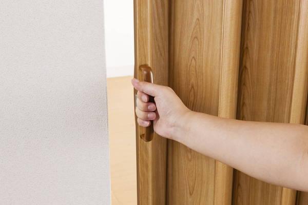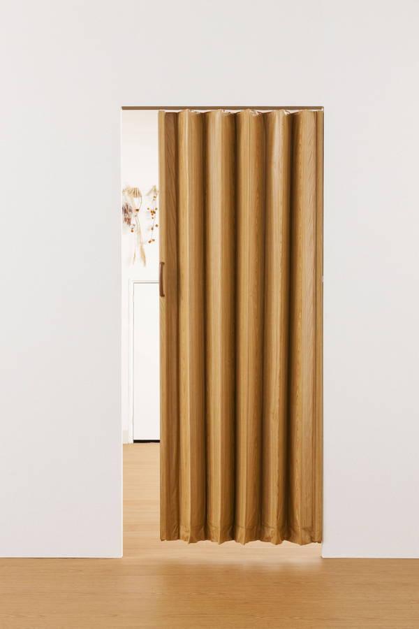丈詰めできる大型取っ手の木目調アコーデオンドア