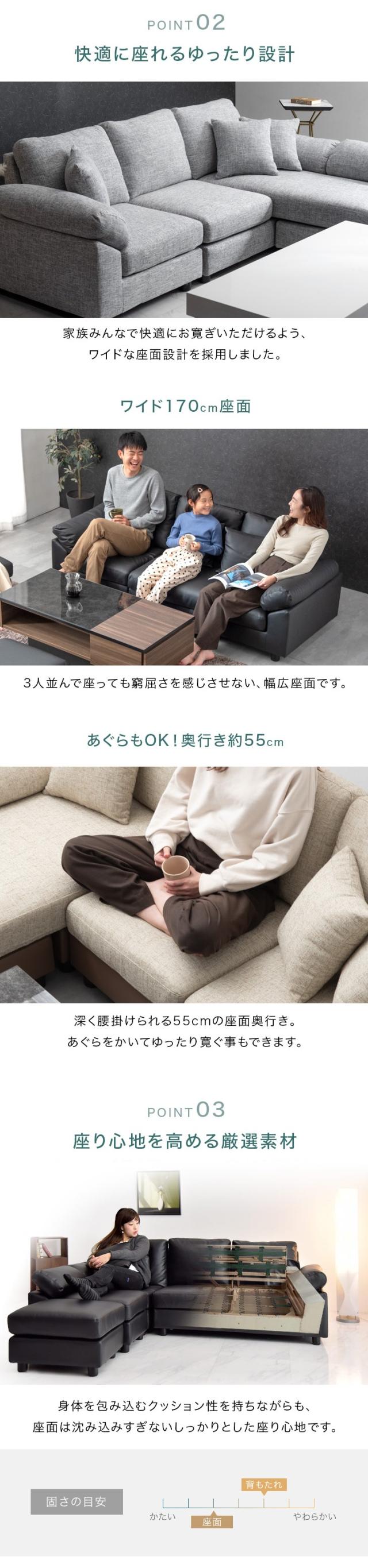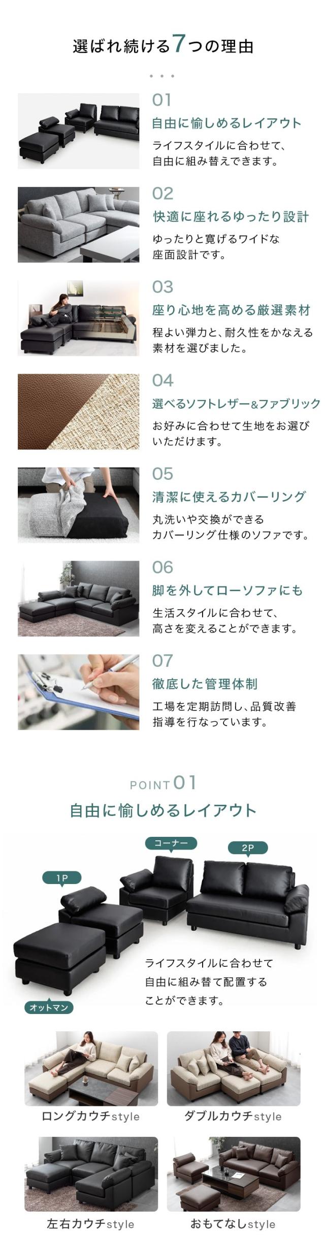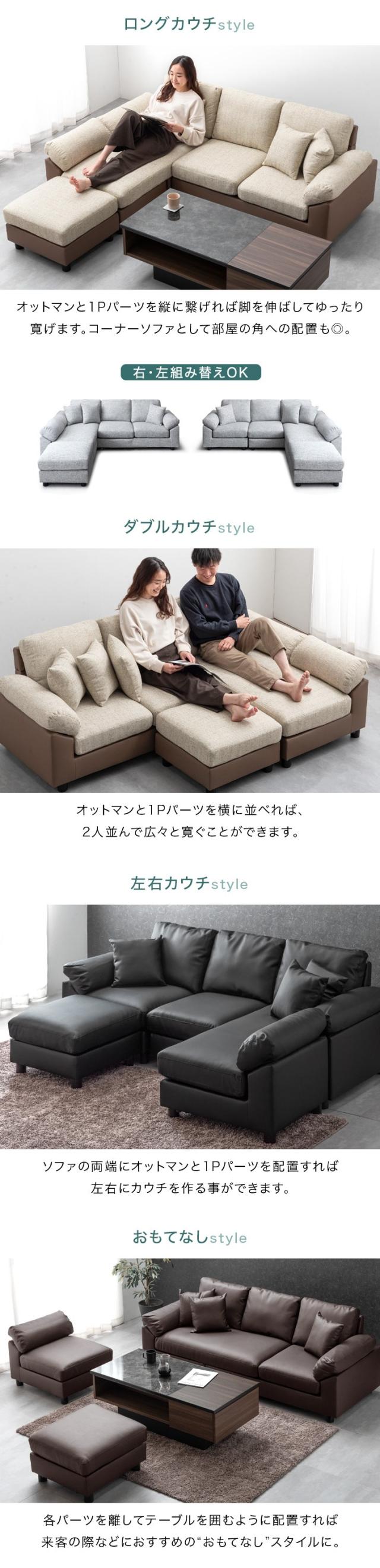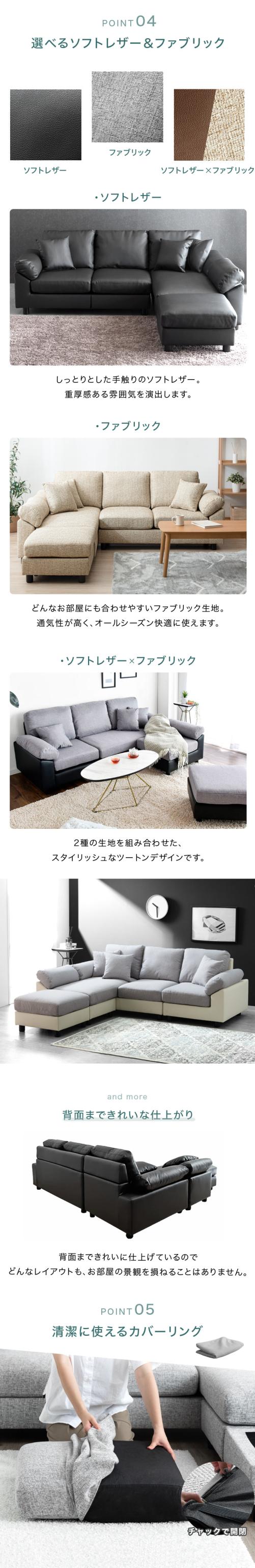 カウチソファ RENEW 3人掛け カバーリング ポケットコイル L字 レザー 布地 合皮 ファブリック ソファー ソファ ソファーセット フロアソファ コーナーソファ カウチソファー 3P オットマン おしゃれ 【時間指定NG】 【超大型商品】 【商品番号:31200005】