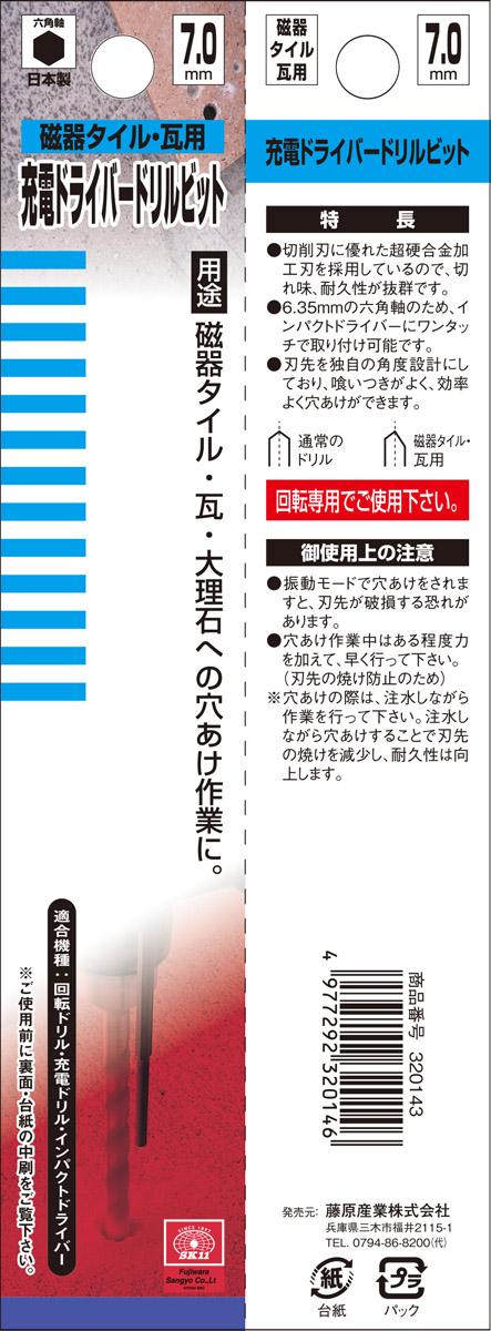 SK11 磁器タイル・瓦用 充電ドライバードリルビット 7.0mmに関する詳細なお問合せは下記までお願いします